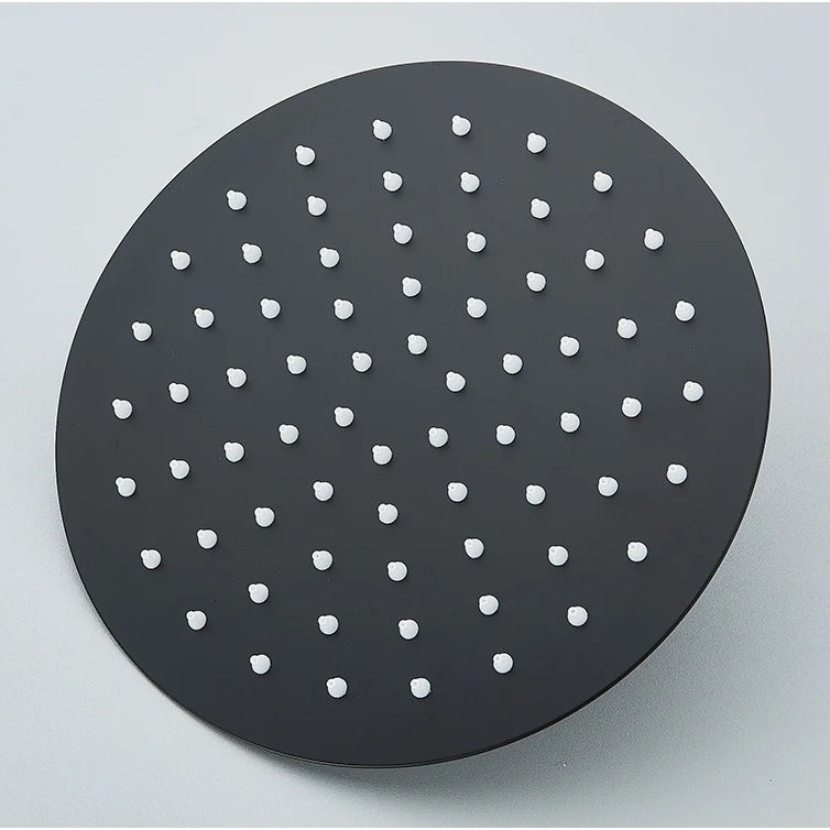 Exposed wall mount outdoor shower with single handle mixer, two-way diverter, round hand shower, and rain shower head in matte black stainless steel. Designed for long-lasting durability and functionality, it'll provide years of reliable use no matter the weather.